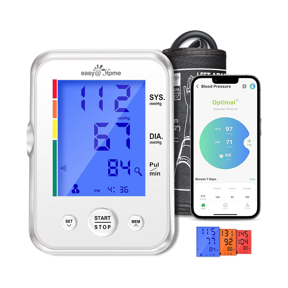 Blood Pressure Monitor for Home Use: Easy@Home Upper Arm Large Cuff BP Machine – Automatic Tensiometer with 3-Color Backlit Hypertension Display and 2 Users – Not Bluetooth Enabled, Manual Data Entry Available via the Free MyHeartPal App | EBP-095