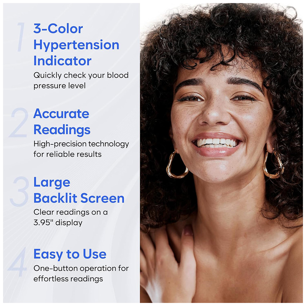 - Comprehensive Monitoring: The monitor is equipped with an advanced hypertension indicator that color codes systolic and diastolic readings in green (normal), orange(prehypertension), and red(hypertension), making it easy to interpret results. It also detects irregular heart rates during measurements and alerts users of any abnormalities