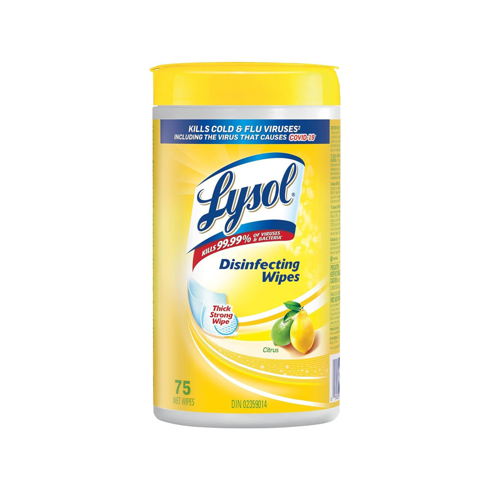 Lysol Disinfecting Wipes, Citrus, Thick Strong Wipe, Kills 99.99% of Viruses & Bacteria, Bulk Pack of 6, 450 Count (6 x 75 count)