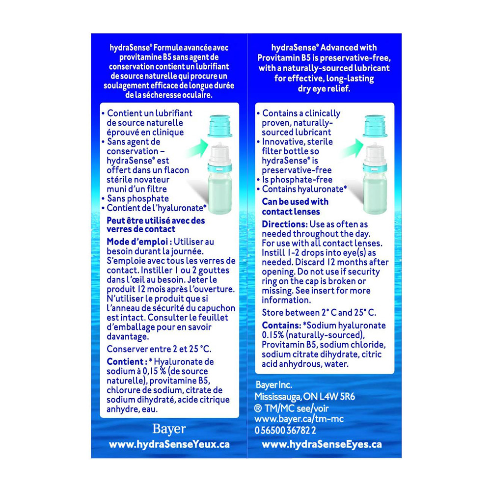 HydraSense Advanced Eye Drops, For Dry Eyes, Preservative Free, Naturally Sourced Lubricant, With Provitamin B5, Home and Away Twin Pack (2 x 10 mL), 20 mL